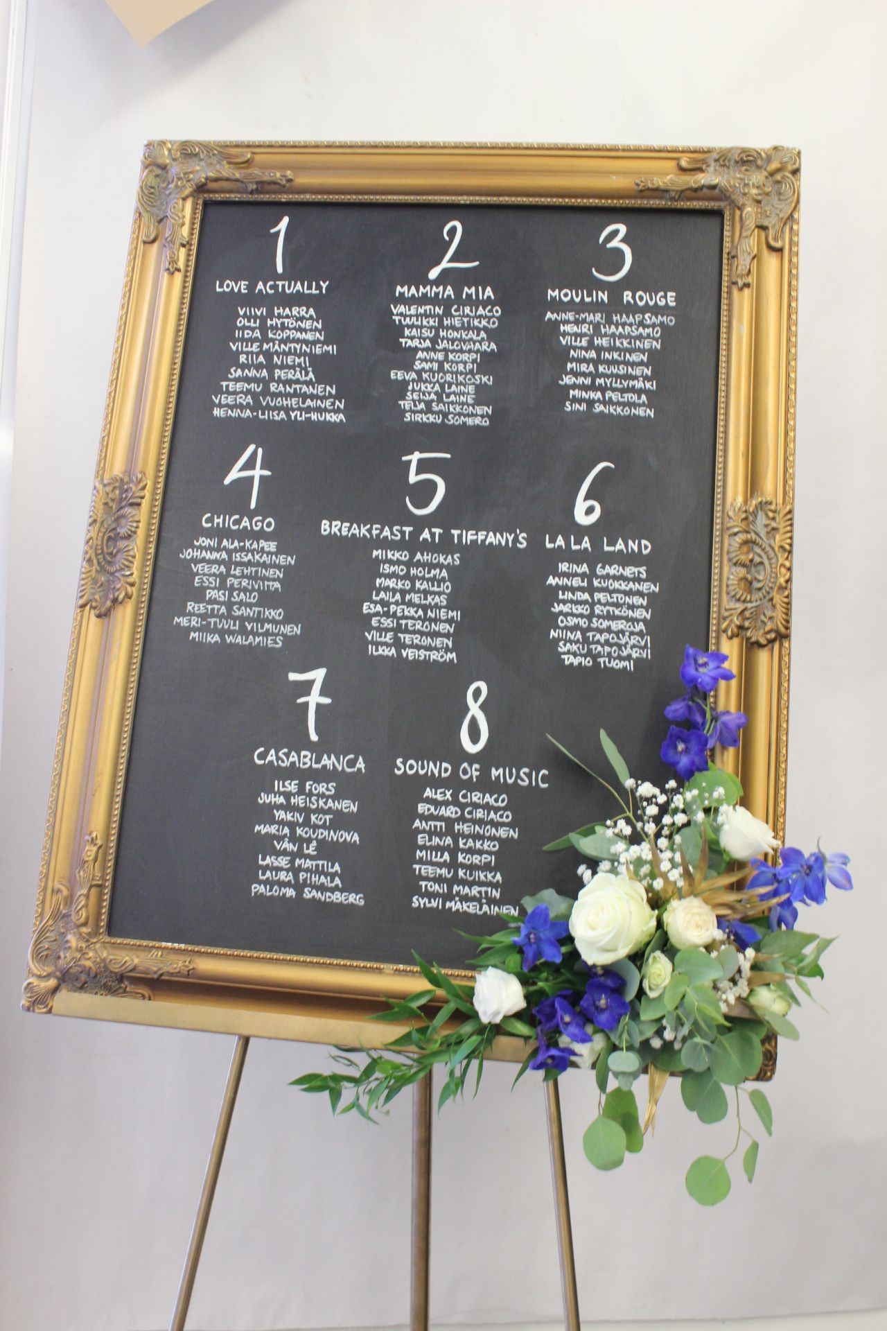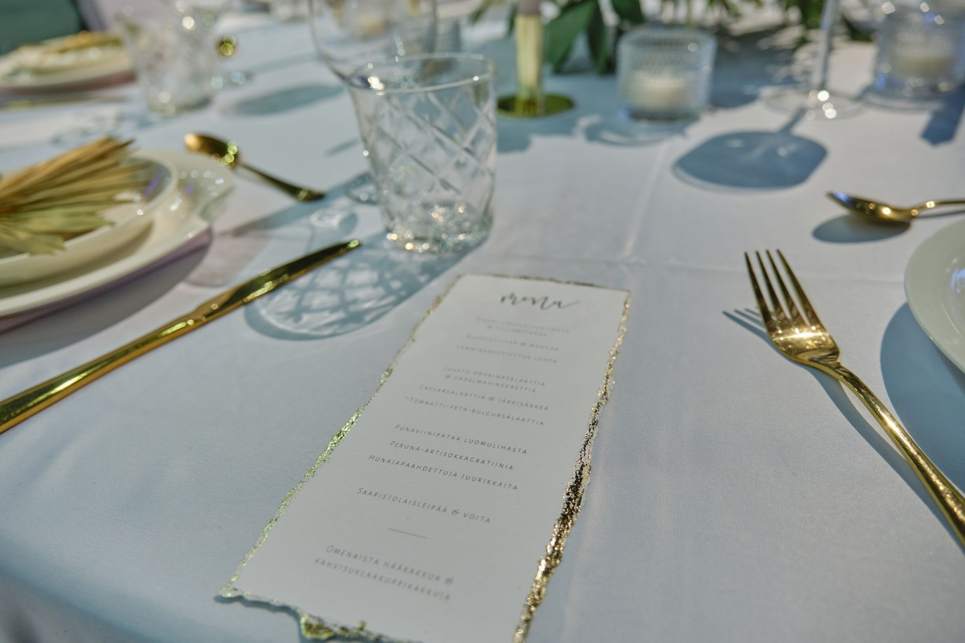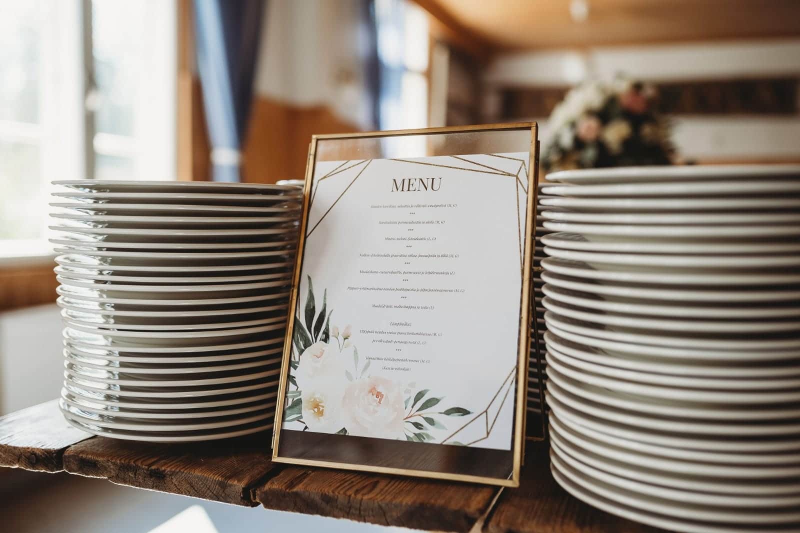 - pöytäkartat, paikkakortit, pöytänumerointi
